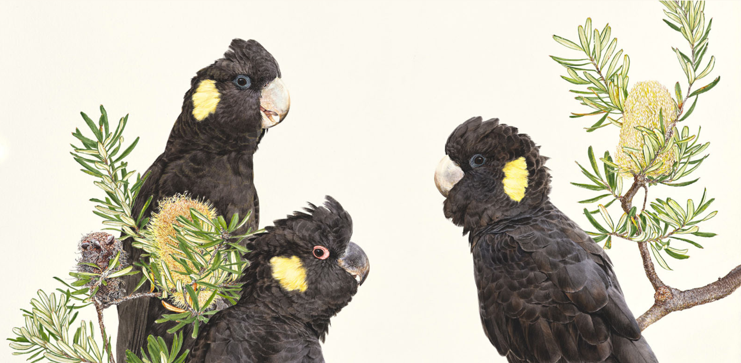 Yellow-Tailed Black Cockatoos ~ Three