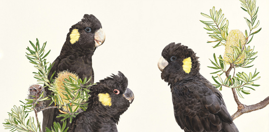 'Yellow-Tailed Black Cockatoos – Three' limited edition print from original painting by Belinda Kurczok